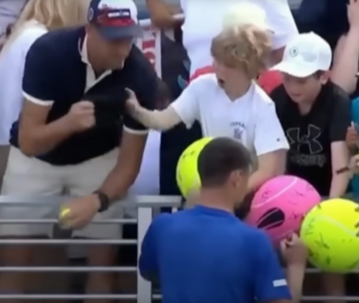 Szczerek, a Polish man who needs to buy a vowel, was caught on camera at the US Open taking a cap from the hands of a literal child.